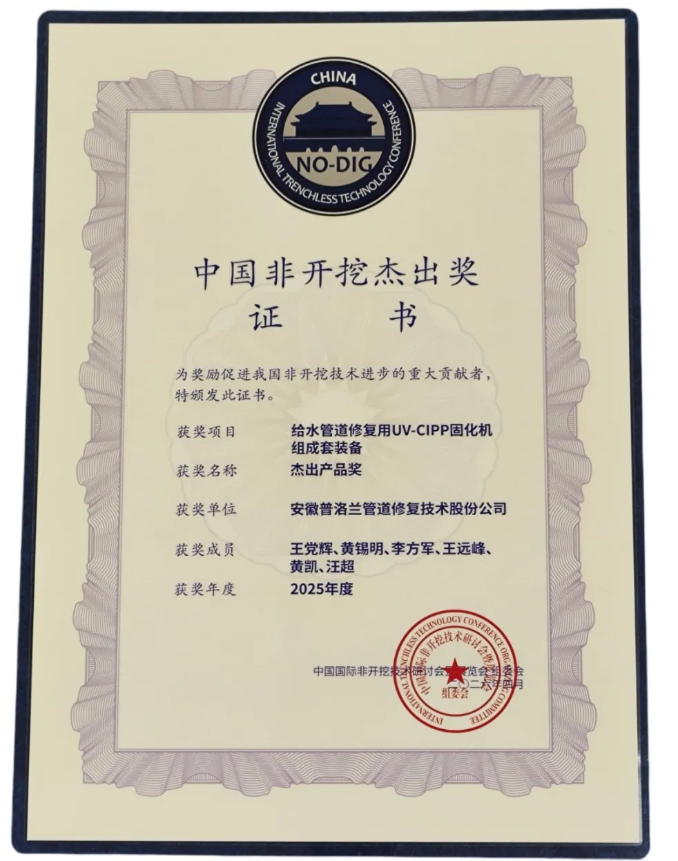 En particular, el curado UV-CIPP sistema Diseñado para potable La rehabilitación de tuberías de agua aborda de manera eficiente los desafíos clave en la renovación de tuberías de agua sin zanjas. Con innovación tecnológica innovadora, fue galardonado con el 2025 Premio al Producto Sobresaliente Sin Zanjas. Tras el Premio al Producto Sobresaliente 2024 por su revestimiento de rehabilitación de alcantarilla, este honor marca la tercera victoria consecutiva de Pro-liner en este prestigioso premio de la industria.